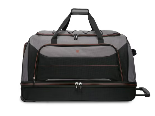 1.) The Protege Rolling Drop-Bottom Duffel Bag (30″) is a spacious, durable travel essential with a drop-bottom compartment for better organization. Its smooth-rolling wheels and telescoping handle make transportation effortless, while multiple pockets offer quick access to essentials. Perfect for road trips and extended travel!