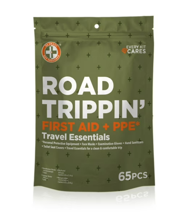 5.) Be prepared for any adventure with the Road Trippin’ Travel Essentials Kit by Be Smart Get Prepared. This 65-piece kit includes everything you need for camping, hiking, fishing, and more, ensuring you’re ready for emergencies and outdoor fun during your road trip.