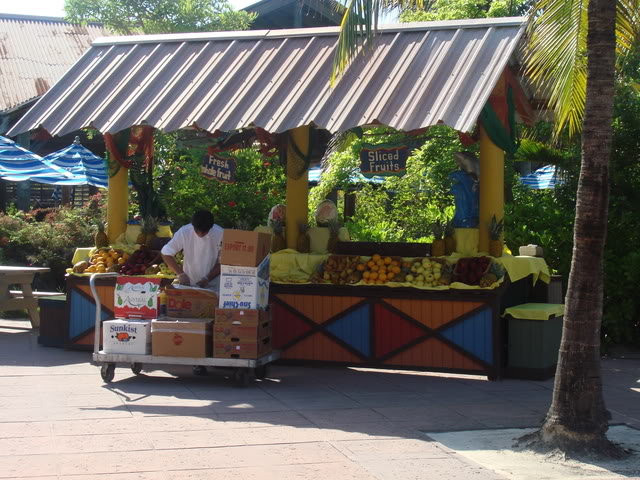 we had to change trams at the family beach to go to the adult beach. We passed a fruit stand where you just go up and get what you want! (all the food is already paid for in the price of your cruise)