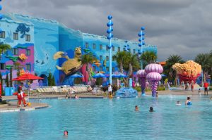 4.) Great pools: At value resorts, pools are pretty basic, but not here! Not only are there multiple ones to choose from, but the Finding Nemo pool has a splash pad area, and you can even hear music underwater! Be sure to stop by the bar, adorably named the drop off, for your favorite adult beverage to sip poolside, or grab a first come first serve cabana at the Cozy Cone Cars themed pool.