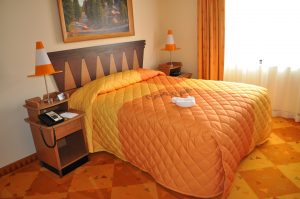 2.) Space options: Family suites were designed with larger families in mind that can’t fit in a regular value resort room (which sleeps 4). These babies sleep six, and there are three themes: Cars, Finding Nemo, and the Lion King. I’m fairly certain my two year old would flip out over any of these themes! There is a bedroom/bath combo with a queen bed, as well as a living room with fold out sofa bed, a table that turns into a bed, a kitchenette, and a second bathroom (HUGE plus!)