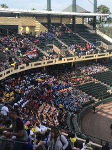 Bobby and EK went to dinner and the pool, and I headed to the Sports Complex to watch the opening ceremonies of the two soccer tournaments I talked about in this post. Thankfully we watched from an air conditioned suite, but it was so cool to see the dedication and love the parents and family members showed to the youth athletes by being at the ceremonies.