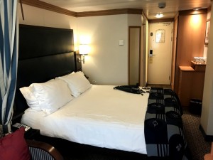 It was weird being on the ship early (boarding usually starts around 11:45ish) because people were still cleaning and scurrying about getting things ready. The next perk was a big one, getting to our rooms early. The letter that was left on our bed started that our stateroom would be a top priority to get cleaned, and it would be ready by 11:30. FYI, for everyone else that gets on board, you can’t access your room until 1:30. We were able to get into ours just before 11:00, and our luggage was already in there, it was awesome.
