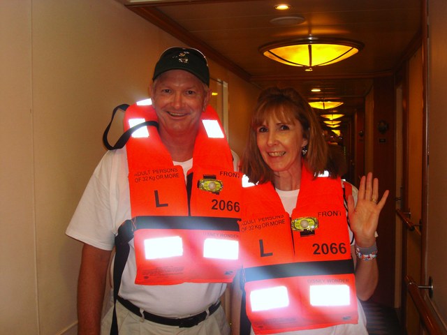 by that time it was time to head back to our rooms for the wonderful boat drill. Here is the obligatory picture…oh Bobby