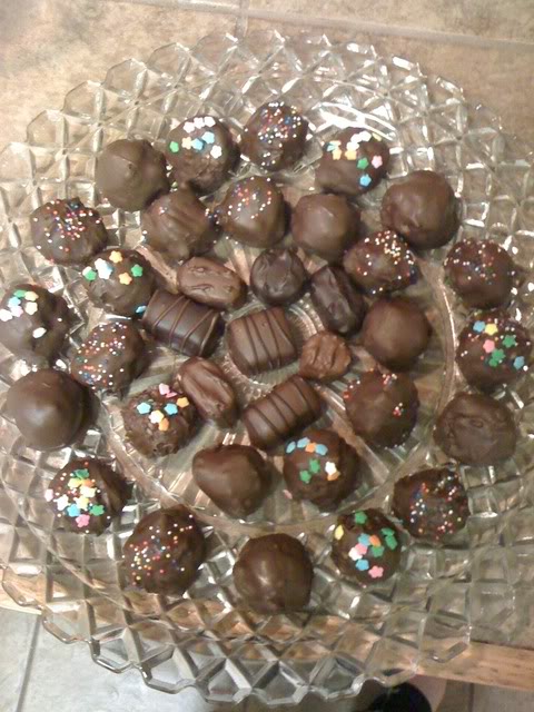 Yummy cake balls! Are those chocolates left over from your mom’s Valentines Day gift?! LOL I haven’t eaten much out of the box yet…I love Russell Stover so I’m trying to behave myself!! lol!