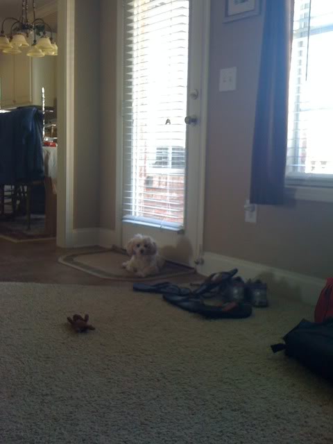 Bobby and I just went on a walk. Poor sweet Bella wants to go back outside so she sat by the door and whined.