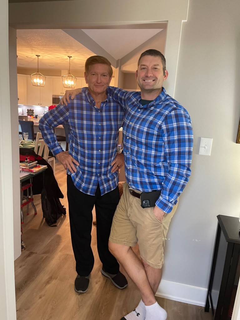 When Bobby saw my dad had on this blue shirt, he ran and put his on to mess with him. heh.