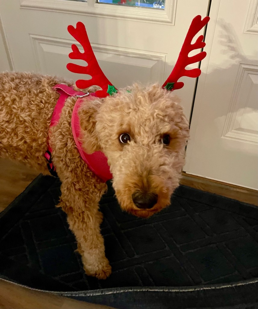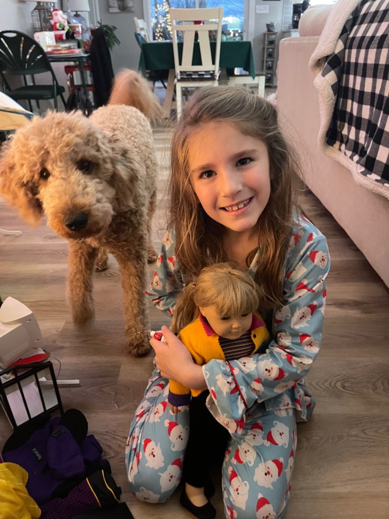 Dolly came too but was not a fan of her ears. Don’t worry, we didn’t leave them on her.
