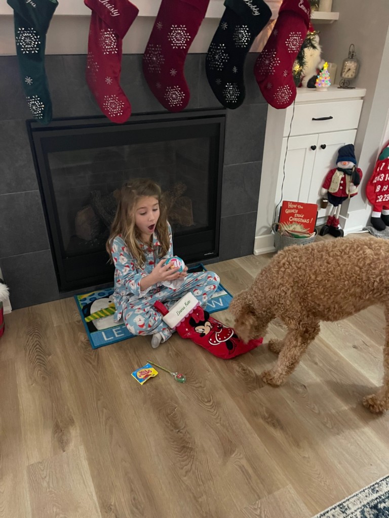 We all turned in and prepared for an early morning with a very excited little girl. We also ended up with a very nosy dog!