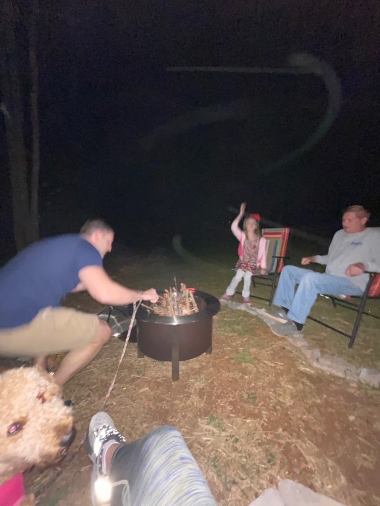 The next day, Monday, my dad and Bobby golfed in the morning while my mom and I walked Emma Kate and Dolly to the playground. We went back and had lunch, and Bobby worked. We went out for Mexican for dinner, because we were all tired of leftover ham and turkey by this point! After dinner we had promised Emma Kate a fire, so that’s what we did. I love a good outdoor fire! The Saints played MNF so we stayed up late watching the game.