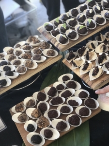 The way the festival works is there are general admission passes and VIP passes for purchase. VIP’s get access to the tasting village at noon, while everyone else waits until 1:00. VIP’s also had access to an outdoor lounge by the pool at the Wyndham across the street. The lounge was open from 1:00-5:00, and the tasting village was open until 4:00. Media got to sneak in early before the madness and take some photos and here all about chocolates and desserts.