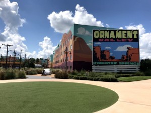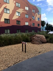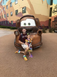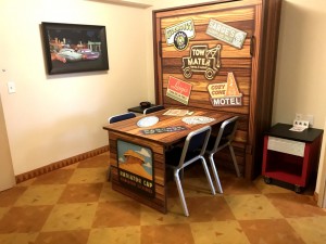 There are four distinct areas at the resort: The Little Mermaid standard rooms, and then three sets of family suites modeled after Finding Nemo, the Lion King, and Cars. We were given a Cars family suite in building one on the third floor, and I have to say, for someone who admittedly loves the deluxe resorts at Disney, I fell in love with this resort. All it took was seeing my daughter’s face light up as she recognized character after character for me to be sold.