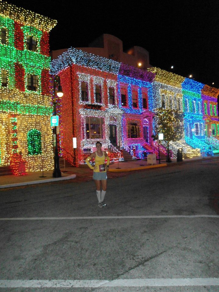 Then we finally hit what I was looking forward to, the Osborne Lights! We literally stopped running and just wandered around for a good five minutes (on the course, of course!) It was so beautiful and cool to run through! They were playing Christmas music as well.