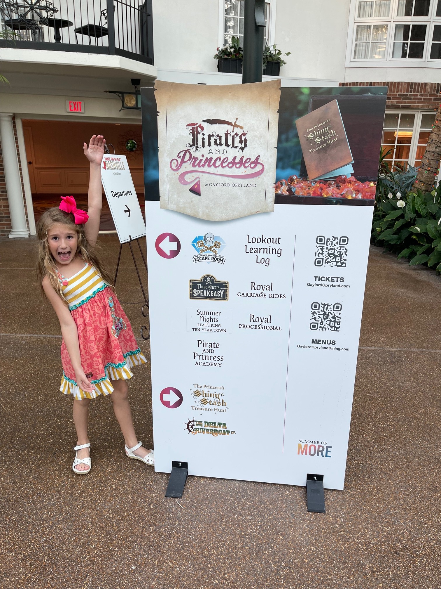We were invited to enjoy the Gaylord Opryland summer of more activities, and I can honestly say I was super impressed! I mean, let’s be honest, there is already a ton to do at this resort, but the extra pirate and princess summer fun just gave it a little something extra which was perfect for Emma Kate!