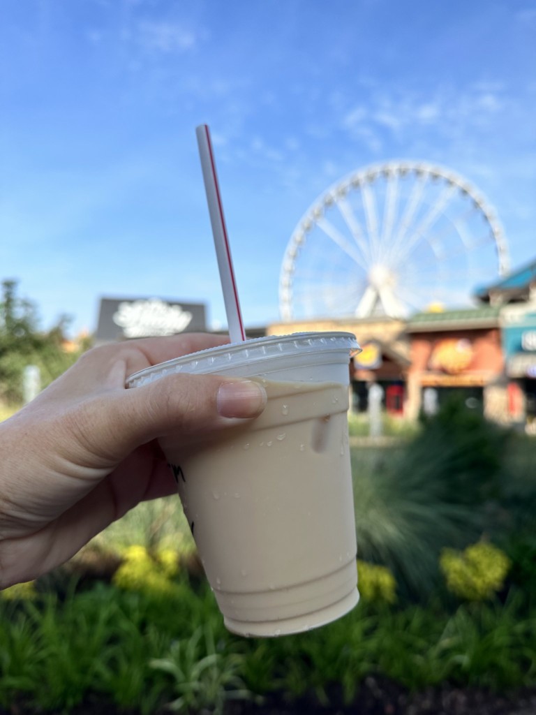 In the mornings, EK and I like to go to the coffee shop in the lobby. They also serve breakfast sandwiches if you want to grab something to eat before your fun day. Ek got a strawberry smoothie.