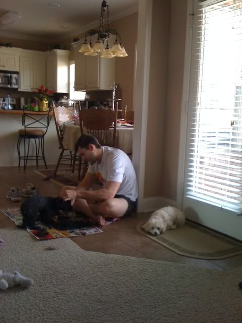 Them Bobby decided it was time to shave the dogs (finally!) They were looking pretty shaggy. Bella wouldn’t come, so he did Sassy first. Bella realized it was inevitable, and resigned herself to the fact that she was next.