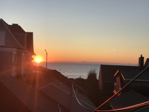 I haven’t raced since February due to a nagging quad injury, so I was really excited to have this opportunity. I really love the 10k distance and thought it would be a good chance to test out my leg while racing on a beautiful course. The race was held on Sunday morning, and it was so fun to be able to watch the sun rise over the ocean. The sun comes up way earlier in Rhode Island than it does in Florida, so when I woke up at 6:15 it was just about to peek over the horizon.