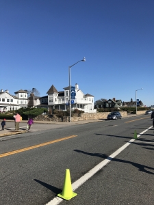 I made it to mile 5, and we were soon heading down a hill right out onto Ocean Road and past the inn where we were staying. This was my favorite part of the course.