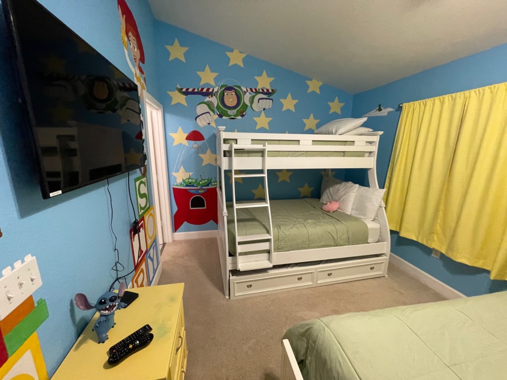 Missing that Disney feel? Don’t worry, this particular home had a Toy Story themed room and bathroom that Emma Kate LOVED! She felt right at home and so special in this room. It was so nice coming back after a day in the parks to just spread out and chill, shower when we wanted (3 bathrooms!) and order Uber Eats.