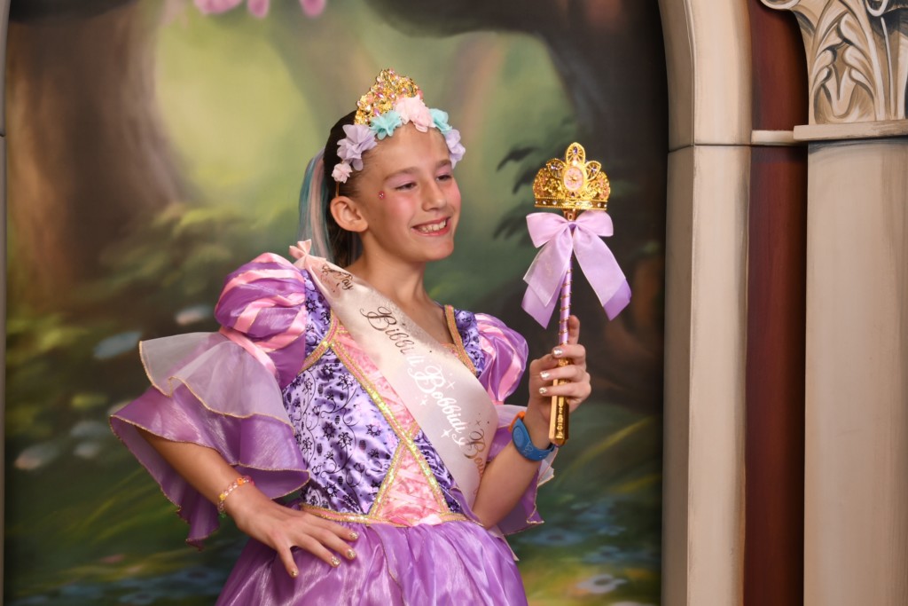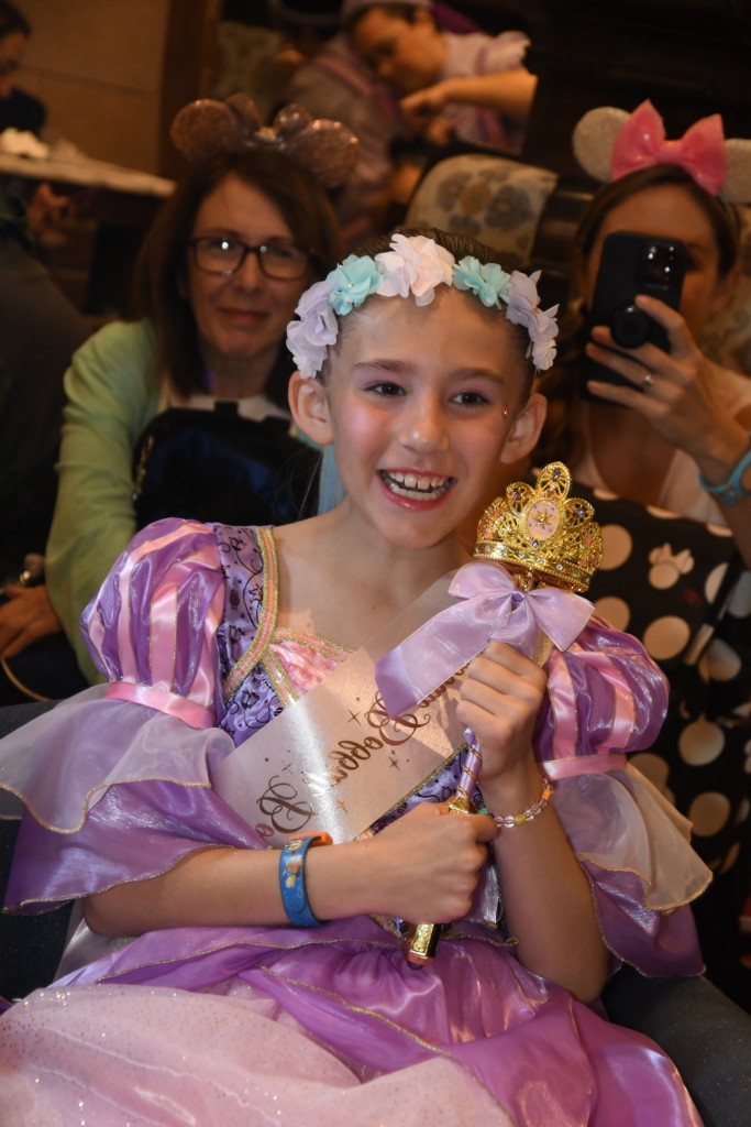 She had a sash put on her, and then had pixie dust sprinkled on top. She had a tiara and flower crown as part of her package, so those were put on, and then a photopass photographer was brought over to capture the big reveal.