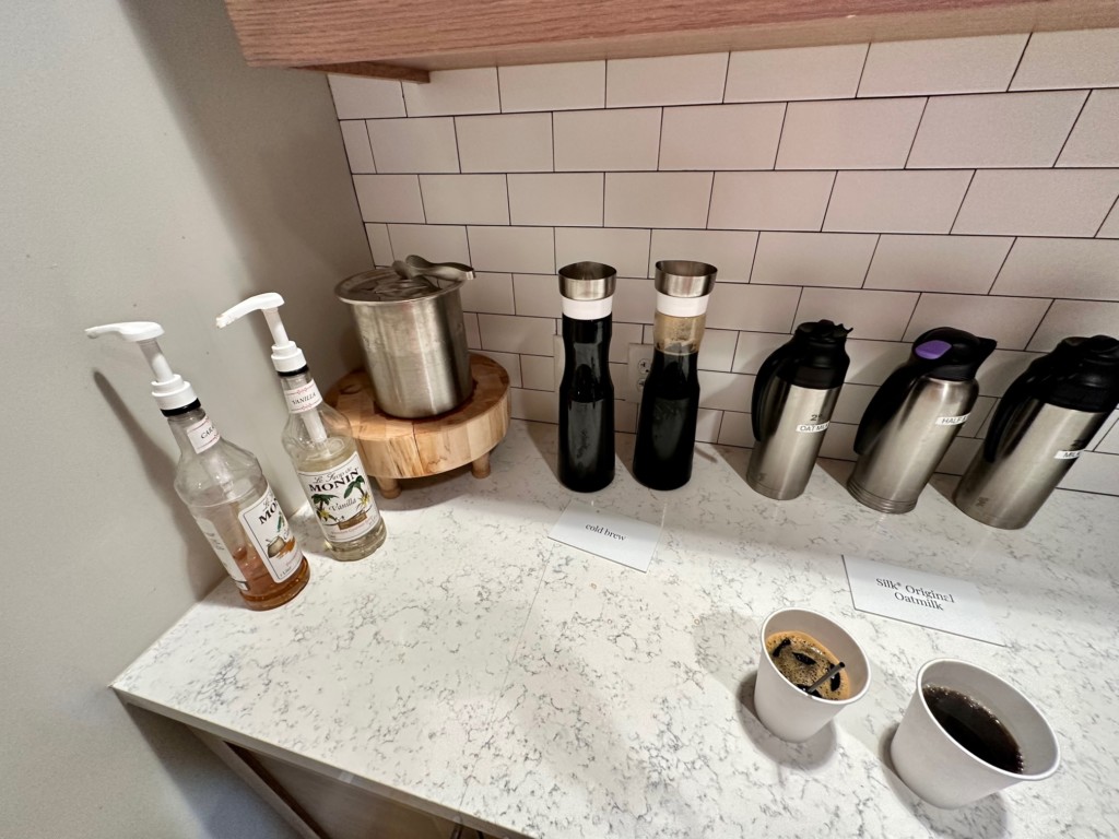 5.) Food options: We ate dinner poolside one night which was really nice and relaxing. The hotel also has a bar in the lobby. Emma Kate loved the included breakfast complete with Mickey waffles. I LOVED that they had cold brew coffee! Such a nice touch which was very much appreciated by my iced coffee loving self and something I have never seen at a hotel. I also love that restaurants are opening up all over Flamingo Crossings, so you can walk from the hotel to dinner. We had the opportunity to try Persimmon Hollow, and highly recommend it!