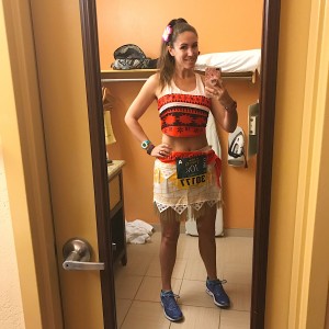 I woke up at 2:45 with plans to catch the 4:00 bus from Caribbean Beach resort. Normally I would sleep until 3:15, but I bought a last minute Moana costume on Amazon a few days before I left and had never tried to “fix it” for running and so I knew it may take awhile to figure out the best way. (Note I do NOT recommend