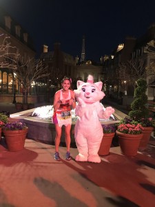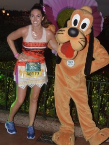 Soon we were running back into EPCOT, and the race was almost over. Jen saw Pluto basically hiding off to the side and we snagged a quick picture with him before running towards Spaceship Earth.