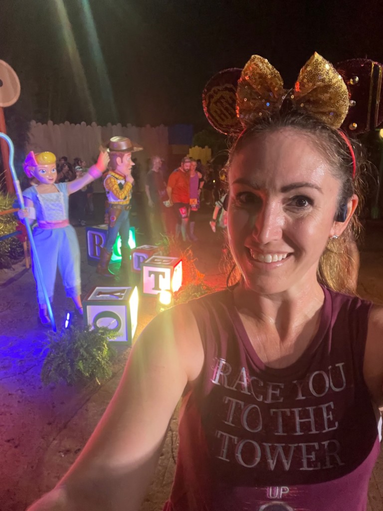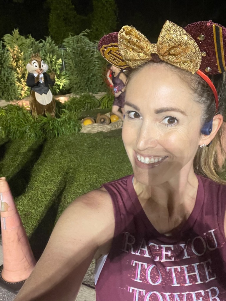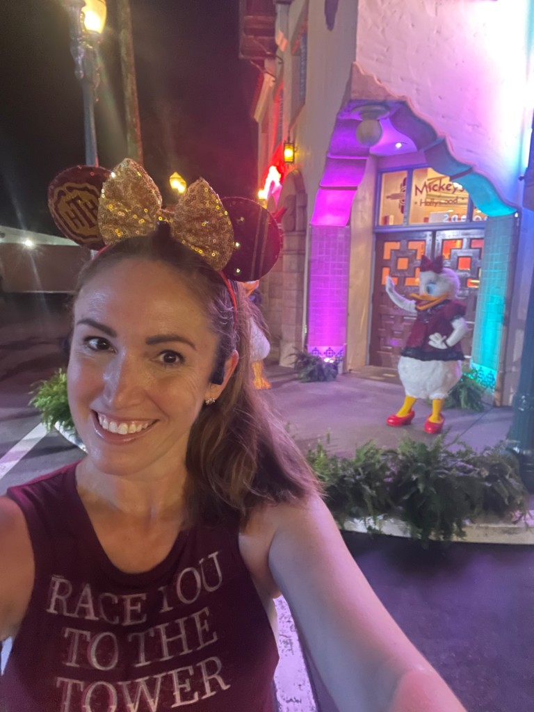 The fireworks soon blasted, and I was off and running for the third time of the weekend. My plan for this race was to just keep moving and have fun. I didn’t plan to stand in a lot of lines but did stop to get some character selfies along the way!