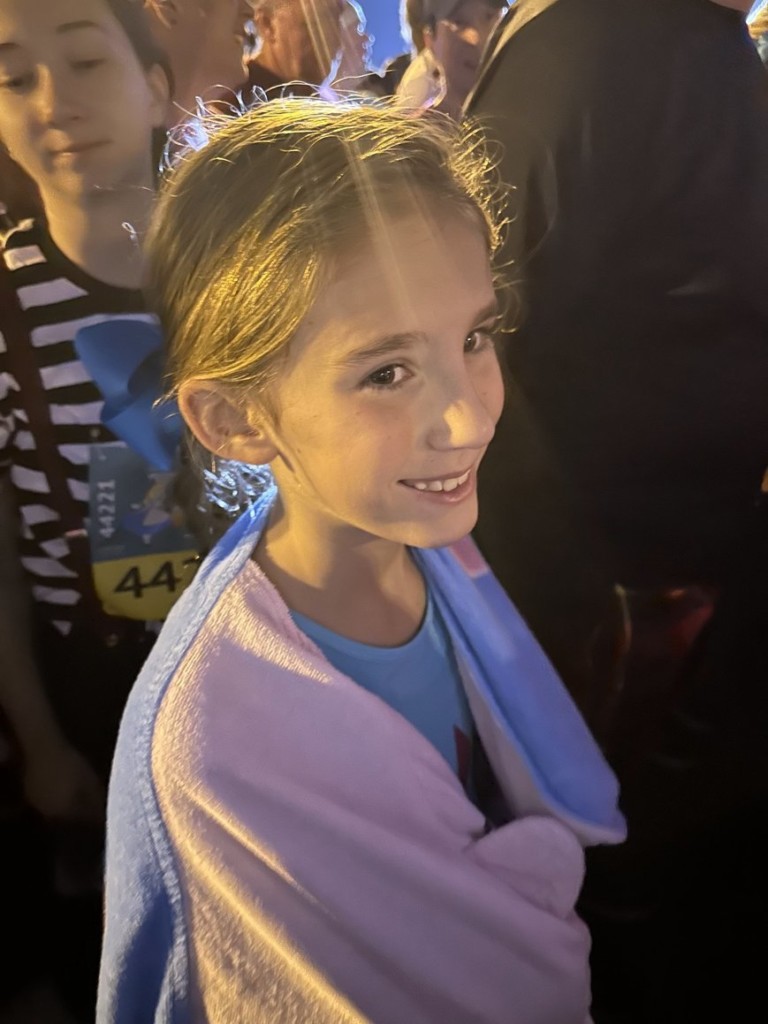 We rounded the corner, and I told her she did it, I could see the finish line! She started running faster and faster, and threw her arms up as she crossed. I was so proud, and the look on her face just gets me every single time.
