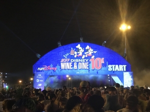This is one thing I dislike, that you are forced to arrive so early if you use Disney transportation. It was a few minutes after 4:00 when we arrived and the race didn’t start until 5:30. We hung out at the start and just chatted, went to the bathroom, etc. and then said our goodbyes and headed into our respective corals. I got as close to the front as I could and sat down. This is where I stayed for about 40 minutes waiting for the race. I didn’t want to play on my phone too much as I didn’t want the battery to die, so it was honestly pretty boring, heh. Finally they started moving the corals up, and then the race started. I was in coral B, so thankfully didn’t have to wait too long.