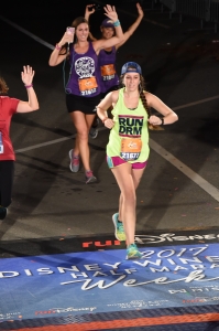 I started running and immediately remembered something about runDisney races, you get zero time to warm up since you are sitting in a corral for so long, then you take off on cold muscles. By the time I realized it was happening, my leg that has been bugging me tightened up like crazy and I knew I was in for a long weekend. It wasn’t bad, but I could “feel” it if that makes sense. My quad tightened then it worked its way down to my knee by mile three and was hurting a little.