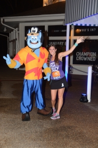 I saw the line for tourist Genie, and it was long but not SUPER long, so I hopped in line because, why not? I don’t know if I have ever taken a picture with him. (Notice how wavy my hair is now!)