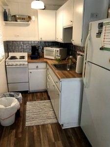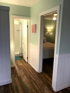 Our cottage had cozy wood floors, a full refrigerator and freezer, and plenty of lighting.