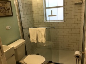 The bathroom wasn’t huge and there was no sink space, but it was just fine for a few days. There was a counter right outside the bathroom in the hall that we used to put our toiletries on instead.