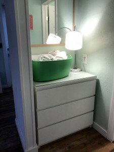 We were also provided with towels and washcloths (in the green bin below) to use during our stay.