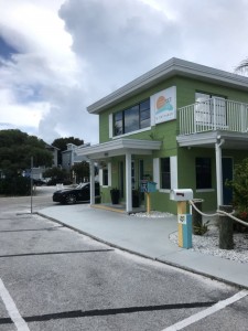 Sunset Inn and Cottages is located in a quiet residential area of Treasure Island, FL. There were hardly any cars, and we were just a couple hundred yards from the ocean which was amazing! Right across from the cottages and Inn at the beach access is a pavilion, bathrooms, and a playground (which we visited many times). It’s partially covered which was awesome considering it’s August! I knew I was immediately going to love this place when we walked up to check in and I saw this little free library. How fun and perfect for the beach.