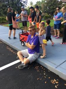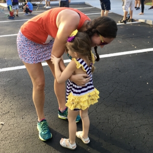 They played on the playground with Emma Kate and were at the finish line when we crossed so it worked out well. Anyway, this was a very small race, and it was admittedly weird that a “race course’ was through streets that I regularly run during the week. Our neighborhood is huge, so I was bummed to see we would be making two loops around the same streets (I knew I would get bored). Oh well, it’s just 3.1 miles I thought to myself. The race was chip timed, but what I didn’t realize until after was that there was no starting mat, so everyone’s gun time was the same as their chip time. I started towards the back, and had I known there was no starting mat I would have started closer to the front, because my time is about 3 seconds off because of this.